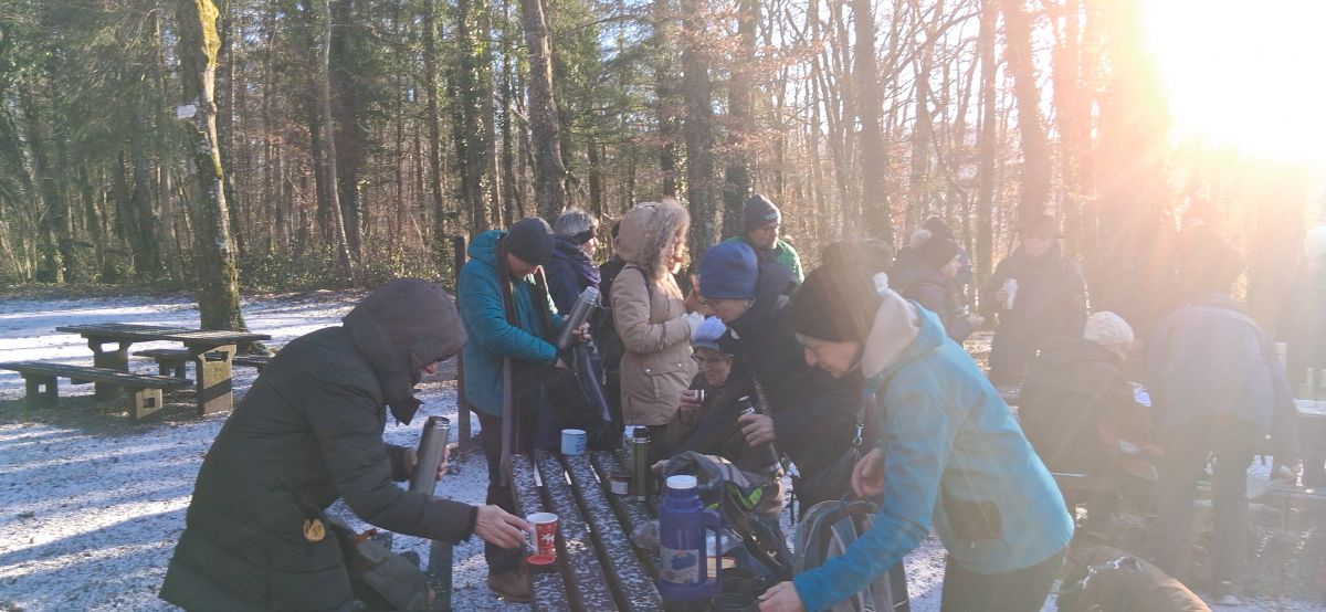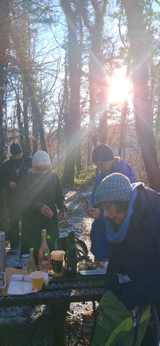 Fünfundzwanzig Wanderinnen begrüßten am verschneiten und sonnendurchfluteten Lauffen bei Ettikon das neue Wanderjahr 2026. Viel zu schnell war der Glühwein ausgetrunken und der selbstgemachte Zopf aufgegessen. Wir versprachen uns ein baldiges Wiedersehen bei einer zünftigen Wanderung.